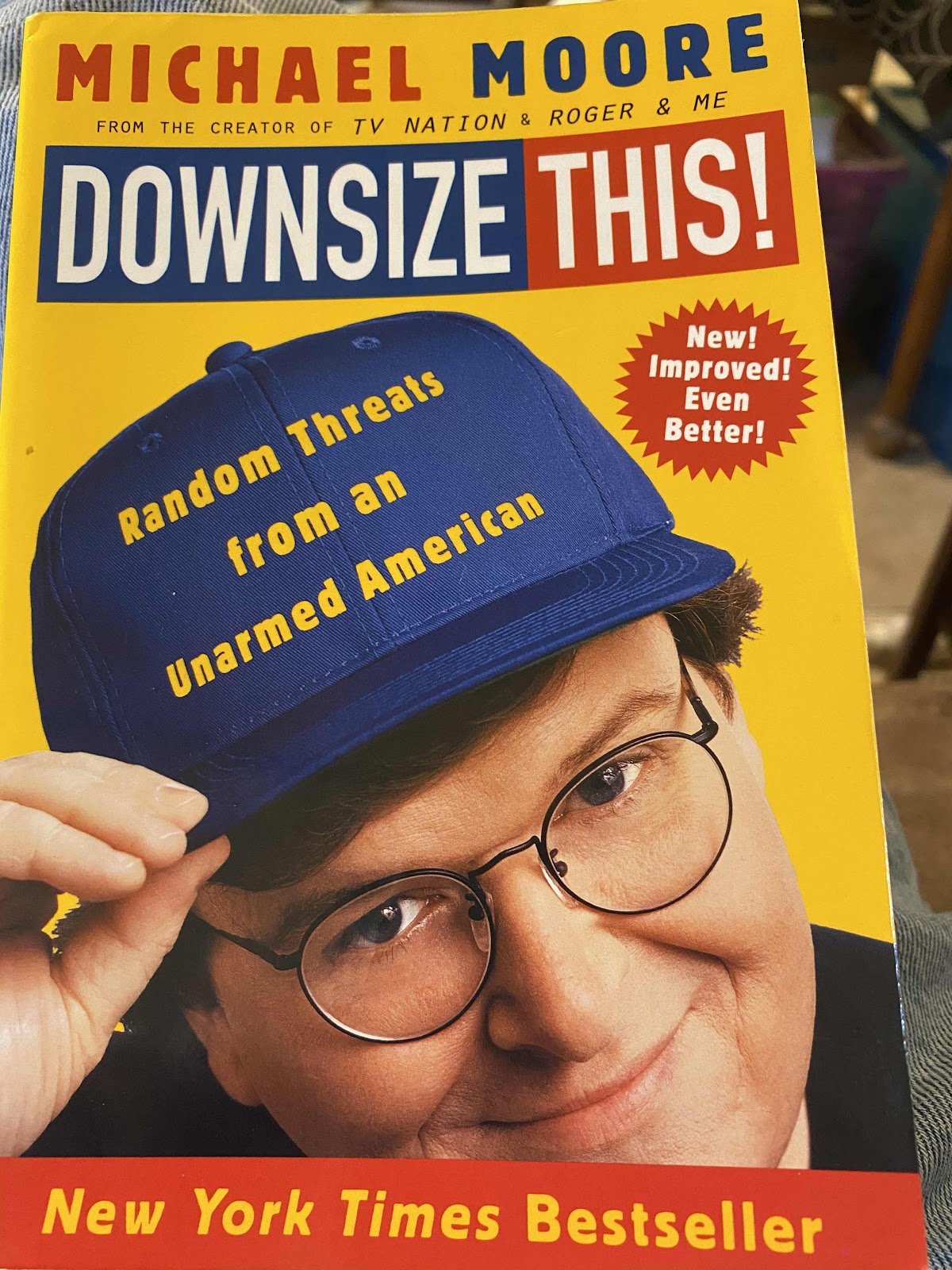 “Downsize This:  Random Threats From An Unarmed American” written by Michael Moore.  312 pages.