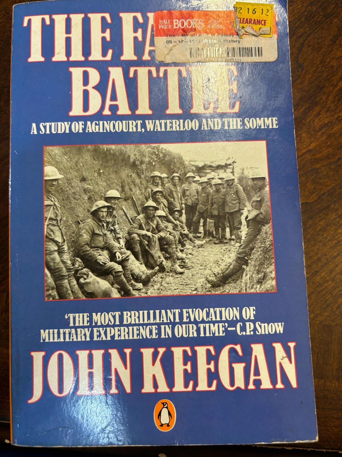 “The Face of Battle:  A Study of Agincourt, Waterloo and the Somme” written by John Keegan.  343 pages.  Four stars.
